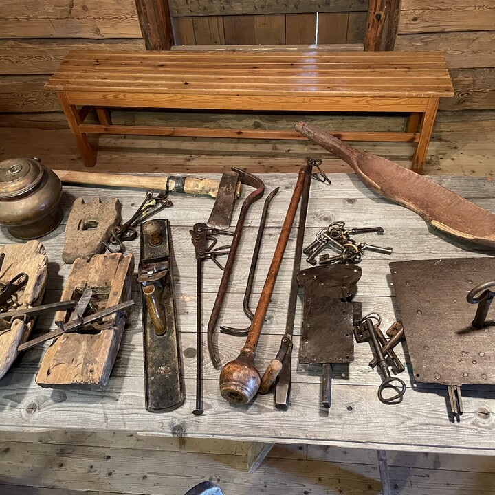 Det som auktioneras ut finns att se inne i hantverkslogen hela Gammelvala-veckan. Bland annat: Stolar, kälke, glas o porslin, kopparartiklar, katt Rex, räv L.Larsson, näverkont, skolplancher, älghorn, gammal barnvagn med mycket mer.